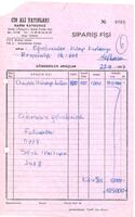 Cin Ali Yayınları'nın Lefkoşa'ya gönderilen sipariş için hazırladığı fiş.