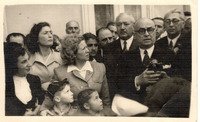 Zirkayı Yetiştirme Yurdu öğretmen ve öğrencileri Ankara'da bayram kutlamasında. Arkada solda Remziye Alişan Kaygusuz (RAK), önde sağdan ikinci Cumhurbaşkanı Celal Bayar.